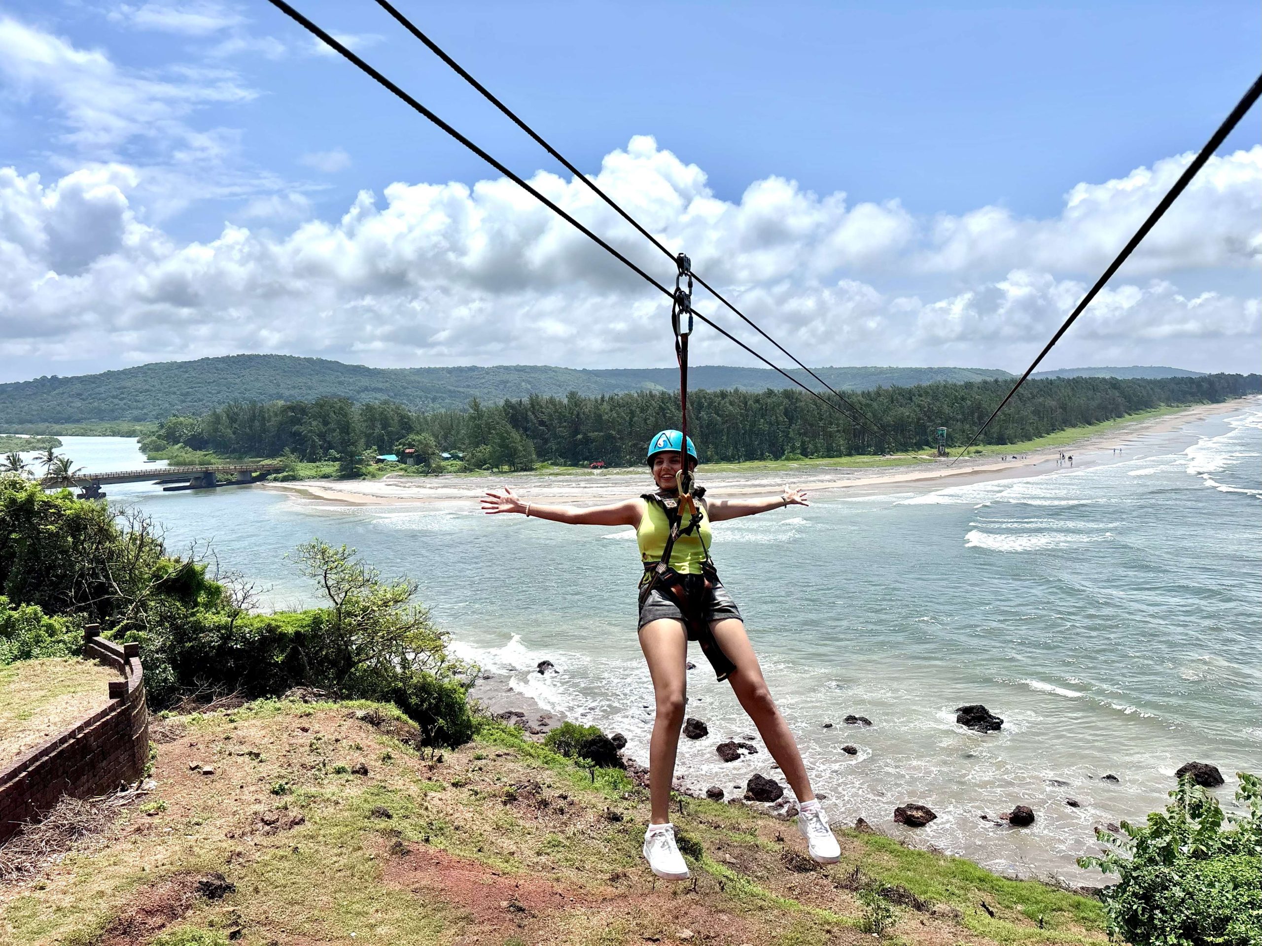 The Ocean Fly Zipline is an exhilarating adventure experience known for being India’s first Over the sea Dual cable zipline. It is situated at the beautiful Aare Ware Beach in Ratnagiri Maharashtra, along the stunning Konkan coast. The zipline offers a unique, adrenaline pumping ride where participants are suspended on a cable and glide over the clear waters of the Arabian Sea. The activity is designed to be suitable for various ages and fitness levels with options sometimes including couple tandem and kids’ ziplines. Safety is a top priority with professional staff and equipment.